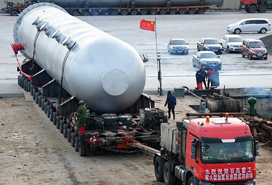 威海石島重工制造“巨無霸”四件套重裝啟運